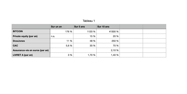 Reste un placement, le bitcoin, apparu en 2008, qui, pour ne pas être considéré comme une monnaie par la Banque de France, n’en est pas moins un instrument d’épargne, considéré par un nombre croissant de gestionnaires de fonds comme une bonne réserve de valeur : avec une capitalisation actuelle de l’ordre de 2.000 milliards de euros (3.400 pour l’ensemble des crypto monnaies), il pèse, en terme de capitalisation, un peu moins qu’Amazon (c’est un peu plus qu’Apple pour l’ensemble des cryptos).